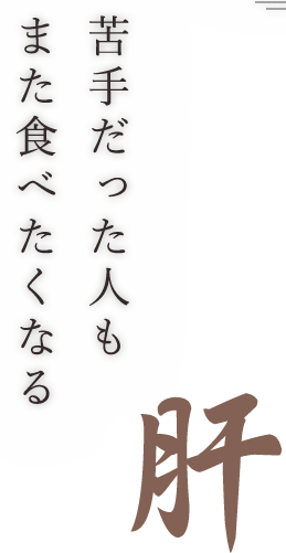 鮮度の良い肝だからこそ実現する、火を通しすぎない絶妙な焼きの技。レアでもなく、完全に火が入っているわけでもない、職人の知恵と勘が冴える一本は、臭みがなく、しっとり濃厚。肝が苦手な方もリピーターになるほどの美味しさです。